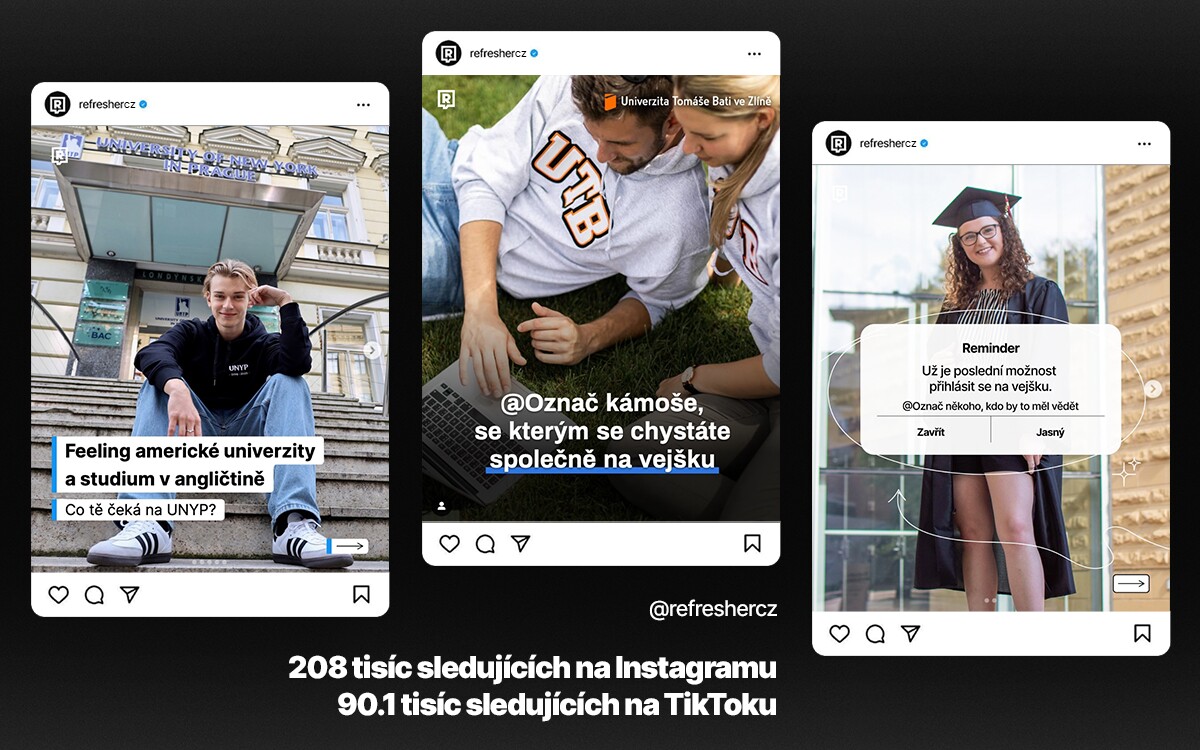 Vysokou školu můžeme představit také prostřednictvím instagramového carouselu. Na to, abyste zaujali konkrétní cílovou skupinu, se skvěle hodí nativní formáty jako reminder ve formě ig postu nebo instagramový tag post.